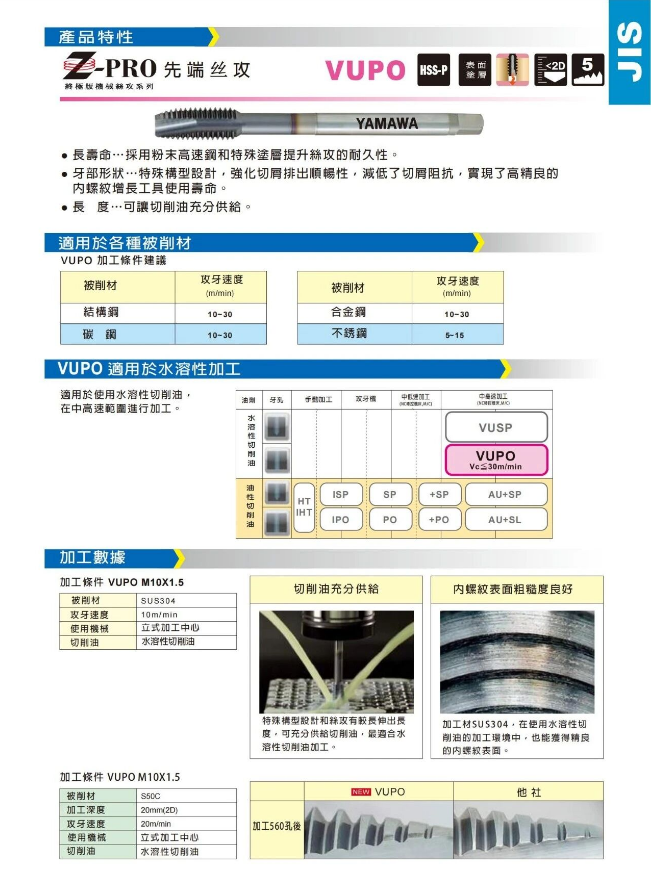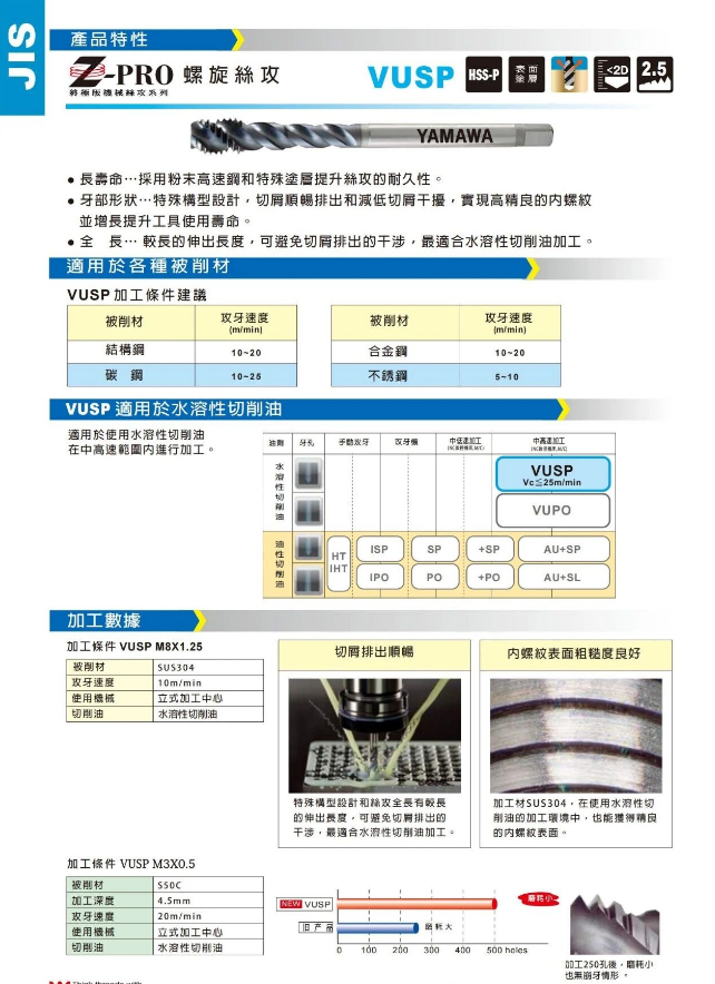 YAMAWA Z-PRO终极版机械丝攻系列 VUSP VUPO,适用于使用水溶性切削油,在中高速范围进行加工!